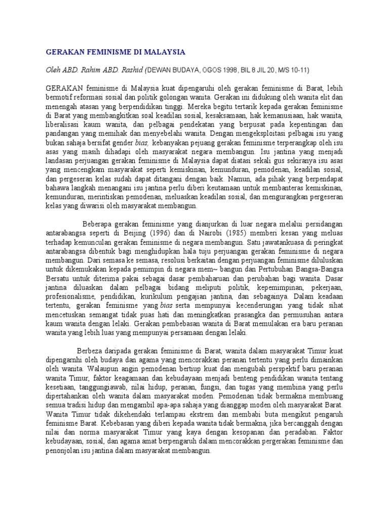 Kajian Terhadap Gerakan Feminisme Di Malaysia Dan Perbandingan Dengan Agama Islam Docx Document