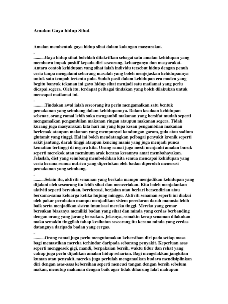 Koleksi Karangan Amalan Gaya Hidup Sihat Dan Pencemaran Alam Project