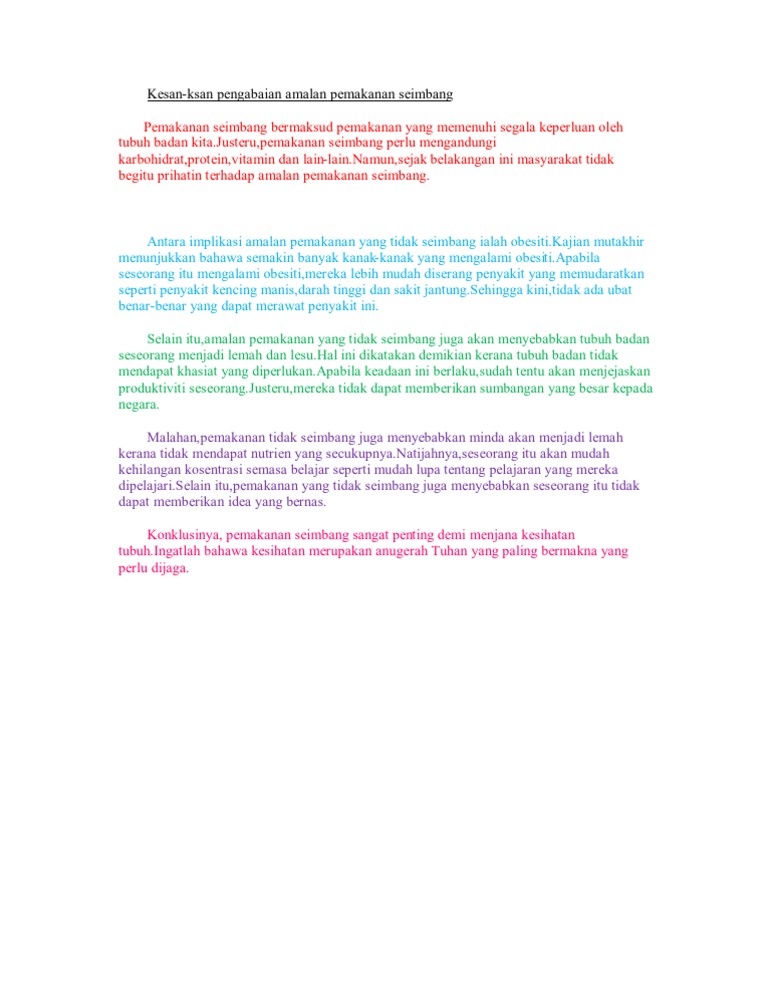 Karangan Amalan Pemakanan Yang Tidak Sihat