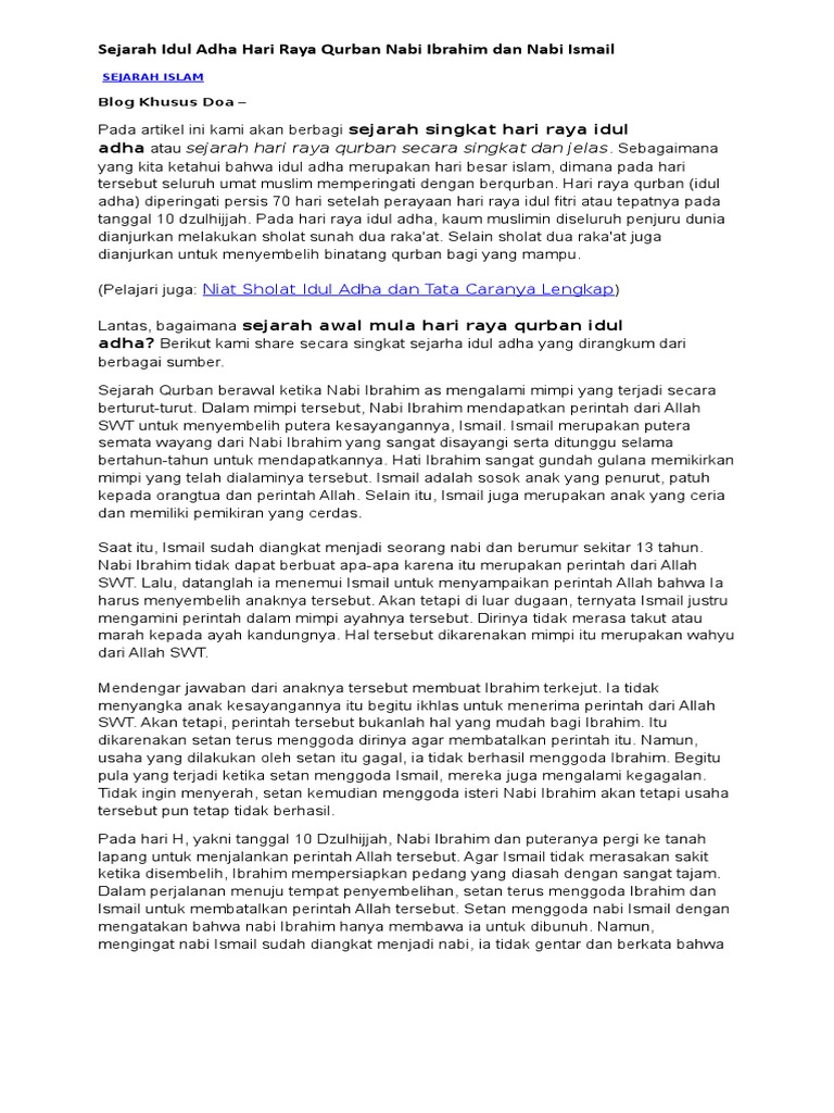 Sejarah Idul Adha Hari Raya Qurban Nabi Ibrahim Dan Nabi Ismail Docx