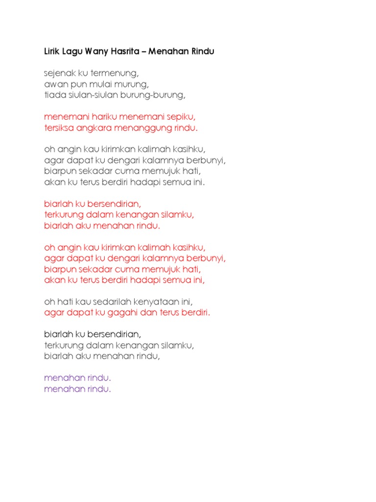 Lirik Lagu Menahan Rindu Wany Hasrita Youtube
