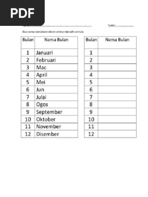 Lembaran Kerja Nama Bulan Dalam Setahun