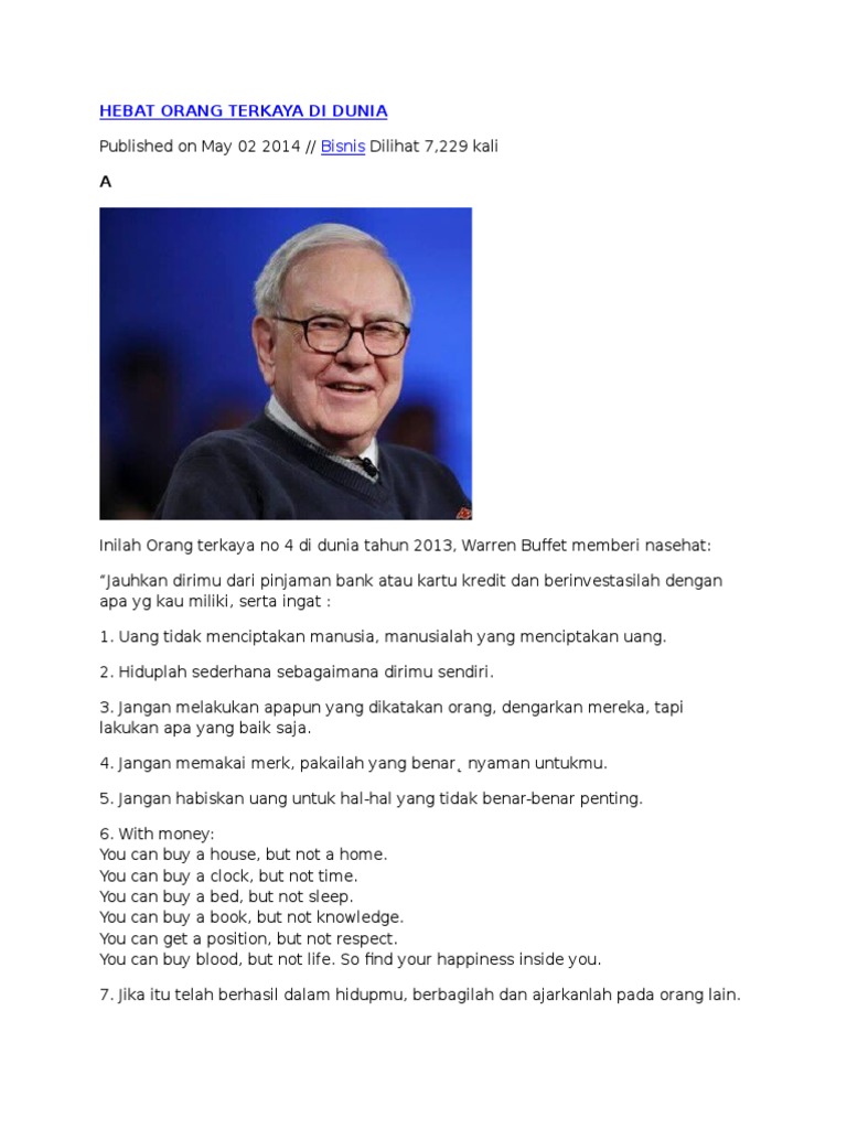 Nasehat Orang Terkaya No 2 Di Dunia Kaskus