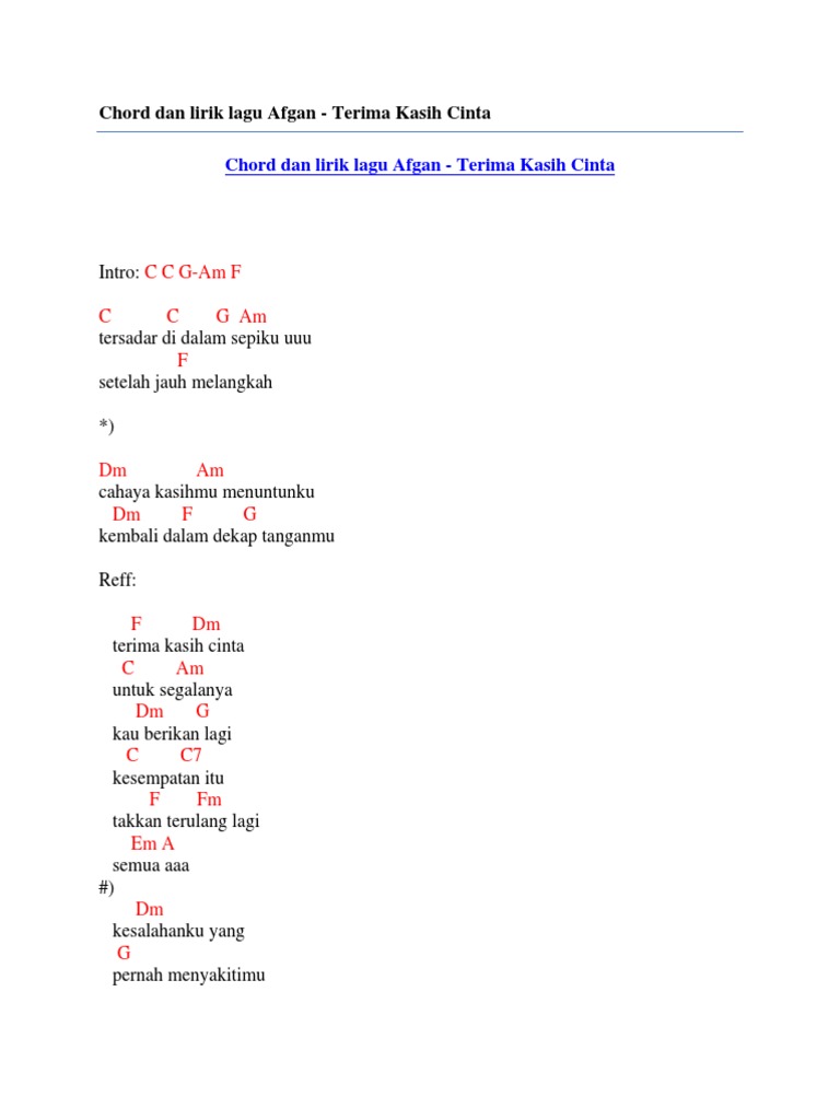 Belajar Not Angka Lagu Afgan Terima Kasih Cinta Tempat Not Angka Dan Lirik